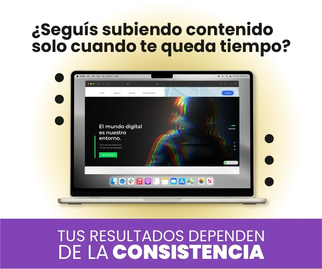 Cada vez que desapareces de redes, tu autoridad se diluye y tus clientes potenciales se enfrían. No es que tu contenido no funcione, es que no tienes un sistema que lo mantenga vivo.
